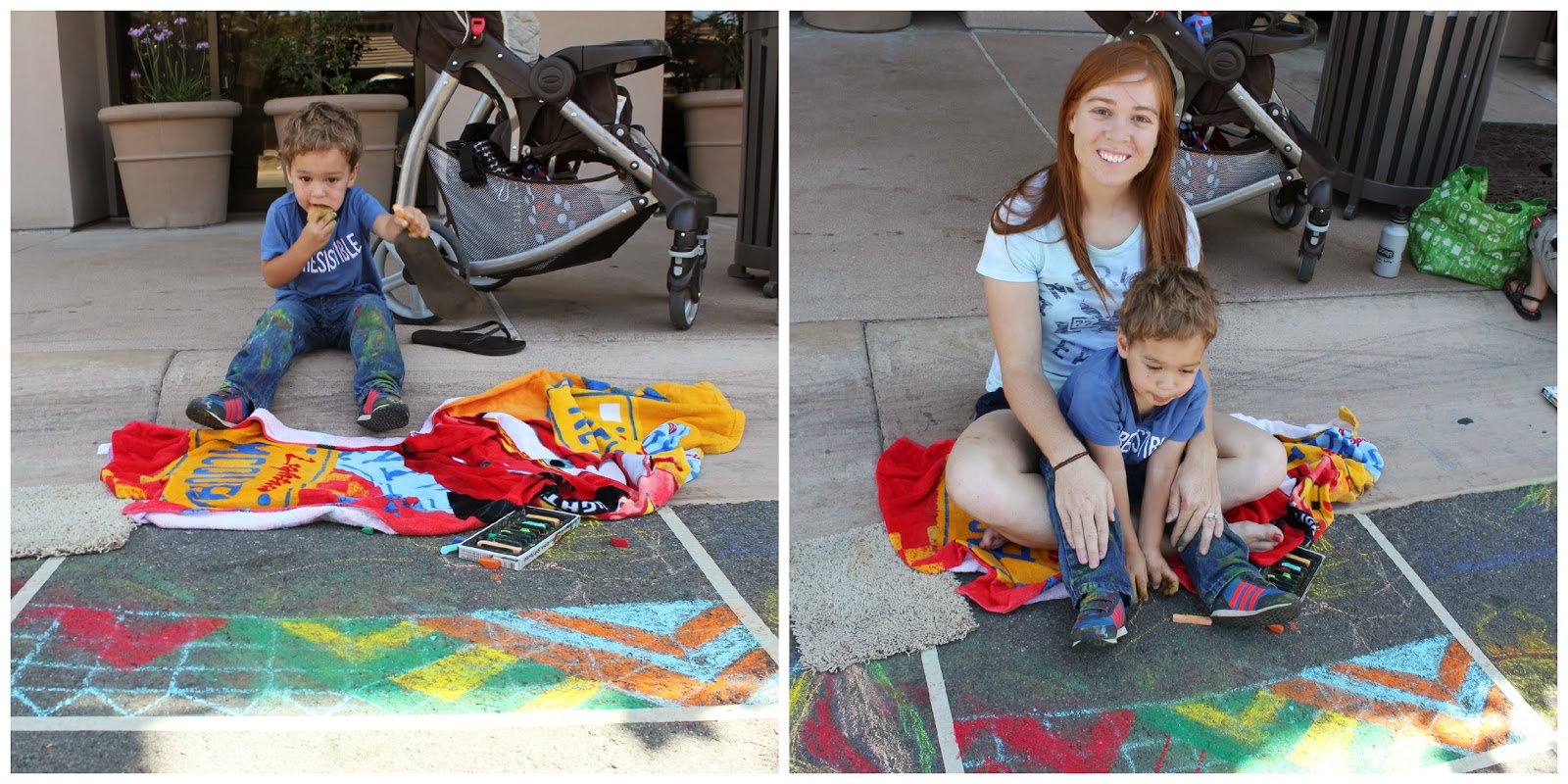 Honestly, I really didn't mind finishing the square. How often do I have an excuses to sit on a Lightning McQueen towel in the middle of the street with a box of chalk coloring.